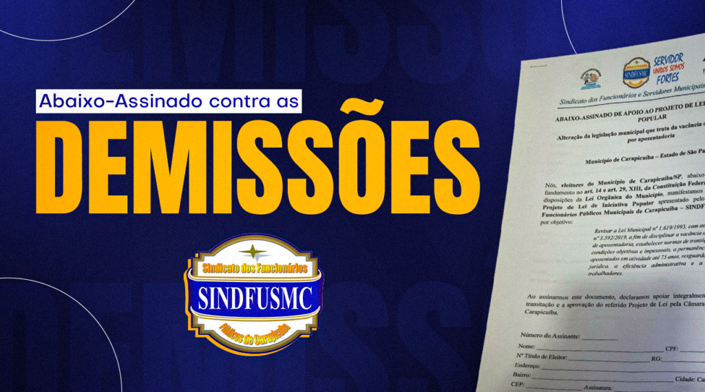 Colegas Servidores! A nossa permanência é um direito e uma necessidade para Carapicuíba e isso está sob constante ameaça. Para mudar isso, lançamos o abaixo-assinado oficial! Entre aqui no site, preencha o termo e nos ajude a colher as assinaturas. Precisamos de força total!