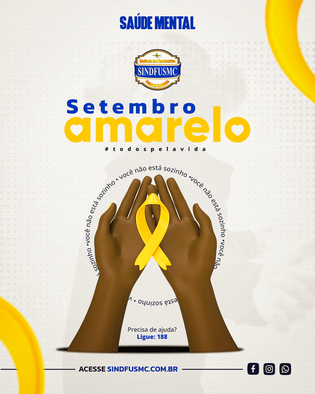 A campanha Setembro Amarelo, criada em 2014 pelo Centro de Valorização da Vida (CVV), tem o intuito de conscientizar sobre a prevenção do suicídio e alertar toda a população. O tema tem nosso total apoio e engajamento.